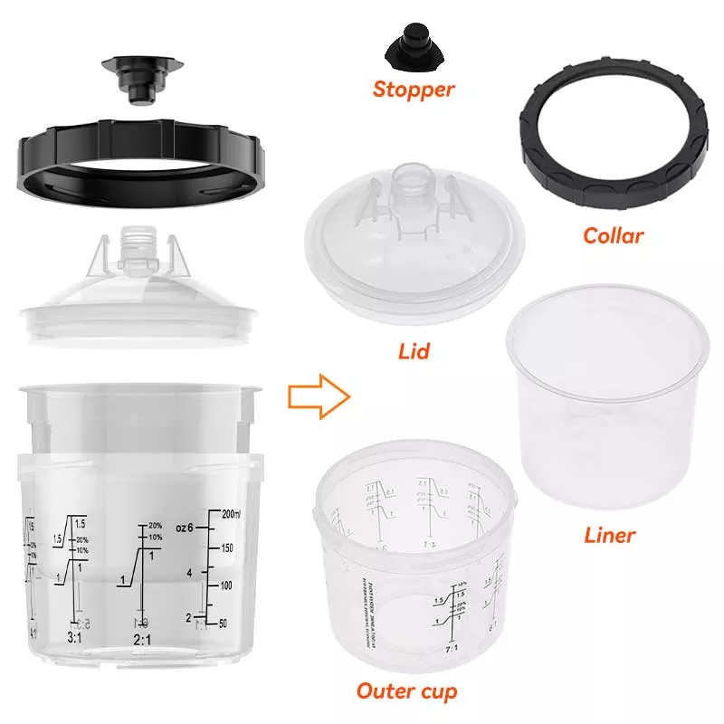Bu 200ML Birdəfəlik Boya Kuboku Sistemi 1.0 əsasən ənənəvi cazibə qüvvəsi ilə qidalanan fincanı əvəz edir, çünki o, nəinki daha çox boyaya qənaət edir, həm də rəngləmə səmərəliliyini artırır. Xüsusilə, rəngləmə zamanı laynerin avtomatik spiralının incə dizaynı boyadan tam istifadə edir; bu arada, sürətli kilidləmə plus laynerin dəyişdirilməsi dizaynı stəkan yuyulmağın qarşısını alır, rəngləmə işini səmərəli və təkrar-təkrar yerinə yetirməyə imkan verir. Müxtəlif sprey tabancası həvəskarlarının təcrübə ehtiyaclarını ödəmək üçün bazarda demək olar ki, bütün markalar üçün sprey tabancası üçün adapterlərimiz var. Adapter boya korroziyasına davamlı və çox davamlı olan paslanmayan poladdan hazırlanmışdır. Laynerin qapaqla sıx birləşməsi stəkan sisteminin rəngləmə zamanı boya sızmamasını təmin edir və israfın qarşısını almaq üçün istifadə olunmamış boyanın uzun müddət saxlanmasını dəstəkləyir.