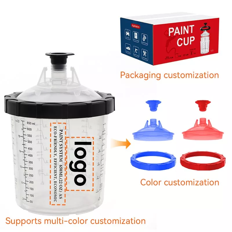 600 ML Birdəfəlik Boya Kuboku Sistemi 1.0, 22 fl oz və ya daha az materialın püskürtüldüyü ərazilər üçün uyğun olan ən çox yönlü standart fincandır. AYSPAT sizin seçiminiz üçün müxtəlif dizaynlı müxtəlif PPS fincan sistemləri təklif edir və həmçinin ehtiyaclarınıza uyğunlaşdırıla bilər: Xarici fincan brendinizin loqotipi və miqyası ilə fərdiləşdirilə bilər, rəng və qapaq növü ilə fərdiləşdirilə bilər. Rəssamlara rəngləmə işlərini peşəkar və səmərəli şəkildə tamamlamağa kömək etmək üçün daha səmərəli və rahat birdəfəlik sprey fincan sistemləri hazırlamağa sadiqik.