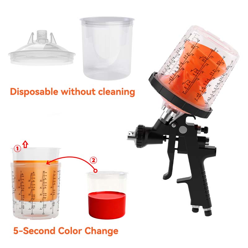 Dəfələrlə Sprey silah kubokunu sökünRəngləri dəyişdirərkən, onu təmizləmək üçün çox miqdarda həlledici istifadə edərək, hələ də qalıq boya səbəb olan rəng çirklənməsindən qaça bilməz. Ənənəvi sprey silahları asanlıqla daşır, nəticədə daha da rəngli tullantılar. Rəsmdən sonra təmizlik ən azı 20 dəqiqə çəkir və həlledicilərin uçucu qıcıqlandırıcıları tənəffüs sisteminizə və əllərinizə zərər verir. Növbəti istifadənizi təsir edən, nozzle tıxanan qalıq boya qalıcı boya narahatlığı var.