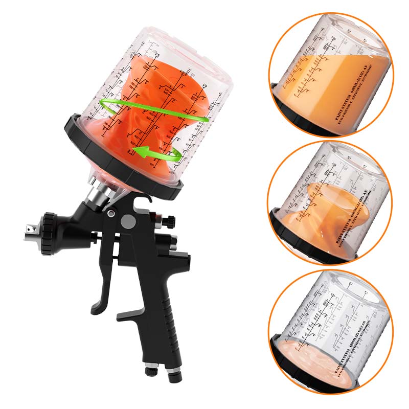 Birdəfəlik sprey silah kuboklarıAvtomobil təmizləyici, mebel rəssamlığı, memarlıq bəzəyi və sənaye istehsalı, çox rəngli püskürtmə əməliyyatları da daxil olmaqla müxtəlif tətbiqlər üçün uyğundur. Onlar standart bir spout dizaynını təqdim edir və adapterlərlə istifadə edildikdə əsas marka sprey silahları ilə istifadə edilə bilər.